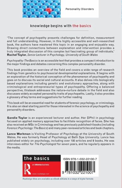 Psychopathy: The Basics is an accessible text that provides a compact introduction to the major findings and debates concerning this complex personality disorder.