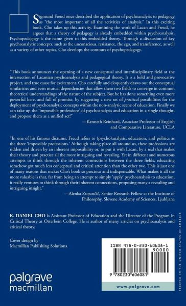 Sigmund Freud once described the application of psychoanalysis to pedagogy as "the most important of all the activities of analysis." In this exciting book, Cho takes up this activity. Examining the work of Jacques Lacan and Freud, he argues that a theory of pedagogy is already embedded within psychoanalysis. Psychopedagogy is the name given to this embedded theory. Through a discussion of key psychoanalytic concepts, such as, the unconscious, resistance, the ego, and transference, as well as a variety of other topics, Cho develops the contours of psychopedagogy.