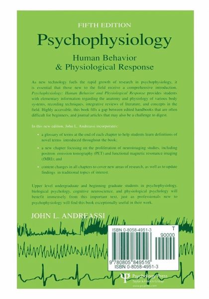 Contents: Preface. Introduction to Psychophysiology. Concepts in Psychophysiology. The Nervous System and Measurement of Its Activity. The EEG and Behavior I: Motor and Mental Activities. The EEG and Behavior II: Sensation Attention Perception Conditioning and Sleep. Event-Related Brain Potentials and Behavior I: Measurement Motor Activity Hemispheric Asymmetries and Sleep. Event-Related Potentials and Behavior II: Mental Sensory Attentional and Perceptual Activities. Event-Related Slow Brain Potentials and Behavior. Neuroimaging Neuromagnetism and Behavior. Muscle Activity and Behavior. Electrodermal Activity (EDA) and Behavior. Pupillary Response and Behavior. Eye Movements Eye Blinks and Behavior. Heart Activity and Behavior I: Developmental Factors Motor and Mental Activities Perception Attention and Orienting Responses. Heart Activity and Behavior II: Stress Emotions Motivation Personality Social Factors Brain Interactions and Conditioning. Blood Pressure Blood Volume and Behavior. Applied Psychophysiology I: Detection of Deception Vigilance Job Design and Workload. Applied Psychophysiology II: Auditory and Visual System Tests Nervous System Disorders Clinical Neurology and Behavior Disorders. Applied Psychophysiology III: Biofeedback and Psychoneuroimmunology. Environmental Psychophysiology. Appendix: Laboratory Safety.