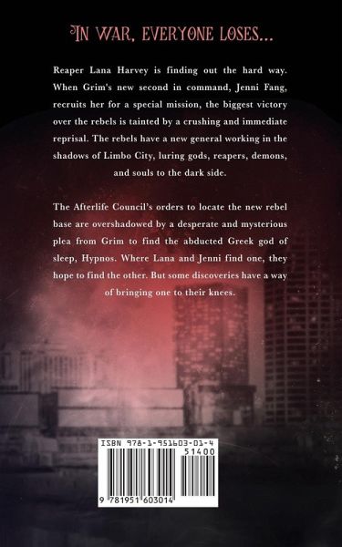 In war, everyone loses... Reaper Lana Harvey is finding out the hard way. When Jenni Fang recruits her for a special mission, the biggest victory over the rebels is followed by a crushing and immediate reprisal. The rebels have a new general working in the shadows of Limbo City, luring gods, reapers, demons, and souls to the dark side. On top of the Afterlife Council's orders to locate the new rebel base, there's Grim's desperate plea to find the abducted Greek god of sleep, Hypnos. Where Lana and Jenni find one, they hope to find the other. But some discoveries have a way of bringing a reaper to her knees. New to Lana and Limbo City? If you love urban fantasy steeped in mythology, dark humor, gritty action, and paranormal romance, begin this series with book one, Graveyard Shift, today! Then check out the spin-off series RETURN TO LIMBO CITY beginning with LIFE AFTER DEATH.