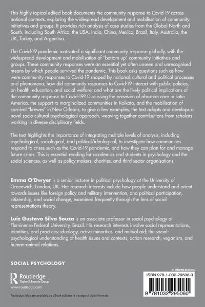 The Covid-19 pandemic motivated a significant community response globally, with the widespread development and mobilisation of "bottom up" community initiatives and groups. These community responses were an essential yet often unseen and unrecognised means by which people survived the pandemic. This book asks questions such as how were community responses to Covid-19 shaped by national, cultural and political processes and phenomena; how did community responses to Covid-19 interact with public policies, on health, education, and social welfare; and what are the likely political implications of the community response to Covid-19? Discussing the provision of abortion care in Latin America, the support to marginalized communities in Kolkata, and the mobilisation of carnival "krewes" in New Orleans, to give a few examples, the text adopts and develops a novel socio-cultural psychological approach, weaving together contributions from scholars working in diverse disciplinary fields.