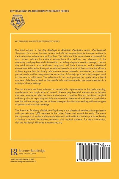 The editors of this volume have assembled recent articles discussing elements of each of the several commonly used psychosocial interventions -- including relapse prevention therapy, community reinforcement, voucher-based programs, self-help therapies, and motivational enhancement therapy--in addition to research-based articles that demonstrate the efficacy of these approaches. The selections in this book will provide the reader with a broad overview of the field as well as the specific information needed to use these therapies in a variety of clinical settings.