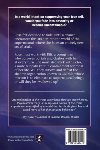 In a world intent on suppressing your true self, would you fade into obscurity or become uncontainable? Rose felt destined to fade, until a chance encounter with a mysterious, inhuman being promised her gifts and thrust her into the world of the supernatural; giving her the chance to fight on. She must work with a young man called Rift who conjures portals and clashes with Rose at every turn. She must also work with a strange telepathic girl called Echo, who was kept in containment for most of her life, losing her voice in the shadow organization's experiments before being freed. Will they survive and destroy the shadow organization known as ORDER that threatens to hunt down all supernatural beings? Or will they be swallowed up?