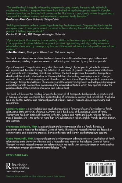This book provides a clear and concise description of the multifaceted notion of psychotherapeutic competencies, building on years of research and training and informed by a systemic approach.