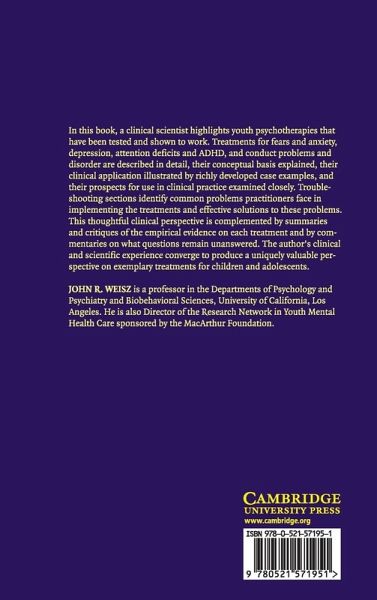 This book is about treatments for child and adolescent mental health problems. The chapters cover treatments for anxiety, depression, ADHD, and conduct problems. The author describes the concepts and theories underlying each treatment, details the treatment procedures and illustrates them with case examples.