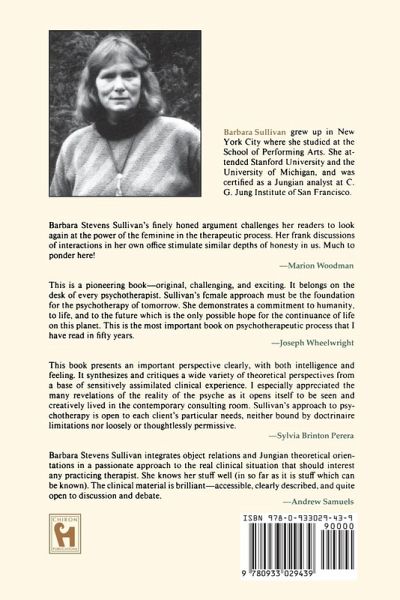 This groundbreaking book offers an exciting proposal for approaching therapeutic work from a perspective that emphasizes the feminine principle of holding and containment, while also recognizing a necessary place for the masculine. Sullivan demonstrates the real possibility of an integrated practice with the potential to heal both men and women. Barbara Sullivan grew up in New York City where she studied at the School of Performing Arts. She attended Stanford University and the University of Michigan, and was certified as a Jungian analyst at the C. G. Jung Institute of San Francisco. Barbara Stevens Sullivan's finely honed argument challenges her readers to look again at the power of the feminine in the therapeutic process. Her frank discussions of interactions in her own office stimulate similar depths of honesty in us. Much to ponder here! -Marion Woodman This is a pioneering book-original, challenging, and exciting. It belongs on the desk of every psychotherapist. Sullivan's female approach must be the foundation for the psychotherapy of tomorrow. She demonstrates a commitment to humanity, to life, and to the future which is the only possible hope for the continuance of life on this planet. This is the most important book on psychotherapeutic process that I have read in fifty years. -Joseph Wheelwright This book presents an important perspective clearly, with both intelligence and feeling. It synthesizes and critiques a wide variety of theoretical perspectives from a base of sensitively assimilated clinical experience. I especially appreciated the many revelations of the reality of the psyche as it opens itself to be seen and creatively lived in the contemporary consulting room. Sullivan's approach to psychotherapy is open to each client's particular needs, neither bound by doctrinaire limitations nor loosely or thoughtlessly permissive. -Sylvia Brinton Perera Barbara Stevens Sullivan integrates object relations and Jungian theoretical orientations in a passionate approach to the real clinical situation that should interest any practicing therapist. She knows her stuff well (in so far as it is stuff which can be known). The clinical material is brilliant-accessible, clearly described, and quite open to discussion and debate. -Andrew Samuels Contents: Chapter 1 The Feminine Principle Chapter 2 The Art of Psychotherapy Chapter 3 The Archetypal Foundations of the Therapeutic Process Chapter 4 Psychotherapy Grounded in the Feminine Principle Chapter 5 The Role of the Masculine Chapter 6 An Archetypal Perspective Chapter 7 Two Clinical Examples Chapter 8 The Disliked Patient