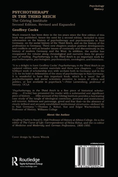 The idea for this book sprang from Geoffrey Cocks' curiosity as to what happened in the new, dynamic field of psychotherapy hi Germany with the advent of Hitler. While traditional views merely asserted that the Nazis destroyed the field of psychotherapy in Germany, a viewpoint justifiably based on the testimony of those in the field who had emigrated from Germany to escape Nazi persecution, Cocks learned that there was more to the story. He looked to several interesting shards of evidence that pointed to the possibility that one could reconstruct a history of morally questionable professional developments in German psychotherapy during the Third Reich.The evidence included: existence of a journal for psychotherapy published continuously from 1928 to 1944; accounts of a psychotherapist who assumed leadership of his colleagues and who was a relative of the powerful Nazi leader Hermann Goring; and a strong psychotherapeutic lobby in German medicine that was intellectually impoverished but apparently not destroyed by the expulsion of the prominent and predominantly Jewish psychoanalytic movement. Non-Jewish psychoanalysts and psychotherapists had in fact pursued their profession under the aegis of the so-called Goring Institute, with substantial support from agencies of the Nazi party, the Reich government, the military, and private business.Much research has been done in the ten years since the first edition of this book was published, hence the need for a second edition. Included is more information on the history of psychotherapy and psychoanalysis in Nazi Germany, on the social history of the Third Reich, and on the history of the professions in Germany. Three new chapters analyze postwar developments and conflicts as well as broader issues of continuity and discontinuity in the history of modern Germany and the West. In addition, the author has reorganized the volume along chronological and narrative lines for greater ease of reading. Psychotherapy in the Third Reich is an important work for psychotherapists, psychologists, psychoanalysts, sociologists, and historians.