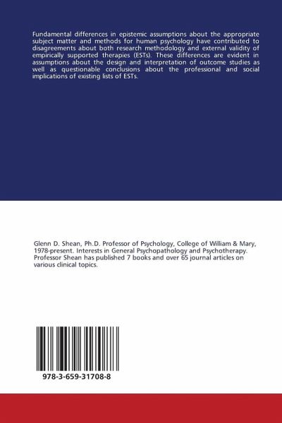 Fundamental differences in epistemic assumptions about the appropriate subject matter and methods for human psychology have contributed to disagreements about both research methodology and external validity of empirically supported therapies (ESTs). These differences are evident in assumptions about the design and interpretation of outcome studies as well as questionable conclusions about the professional and social implications of existing lists of ESTs.
