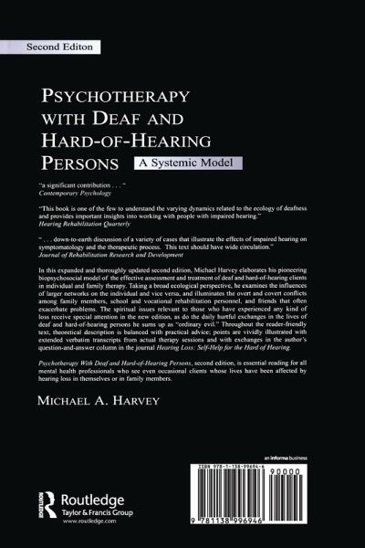 In this expanded and thoroughly updated second edition, Michael A. Harvey elaborates his pioneering biopsychosocial model of the effective assessment and treatment of deaf and hard-of-hearing clients in individual and family therapy. Taking a broad ecological perspective, he examines the influences of larger networks on the individual and vice versa, and illuminates the overt and covert conflicts among family members, school and vocational rehabilitation personnel, and friends that often exacerbate problems. The spiritual issues relevant to those who have experienced any kind of loss receive special attention in the new edition, as do the daily hurtful exchanges in the lives of the deaf he sums up as "ordinary evil." Throughout the reader-friendly text, theoretical description is balanced with practical advice; points are vividly illustrated with extended verbatim transcripts from actual therapy sessions and with exchanges in the author's question-and-answer column in the journal, Hearing Loss: Self-Help for the Hard of Hearing.