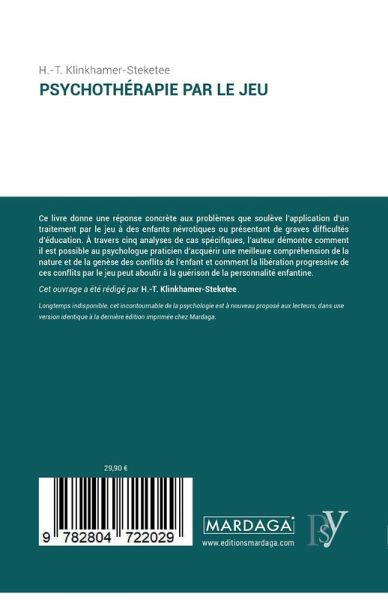 Ce livre donne une réponse concrète aux problèmes que soulève l¿application d¿un traitement par le jeu à des enfants névrotiques ou présentant de graves difficultés d¿éducation. À travers cinq analyses de cas spécifiques, l¿auteur démontre comment il est possible au psychologue praticien d¿acquérir une meilleure compréhension de la nature et de la genèse des conflits de l¿enfant et comment la libération progressive de ces conflits par le jeu peut aboutir à la guérison de la personnalité enfantine. Cet ouvrage a été rédigé par H.-T. Klinkhamer-Steketee.