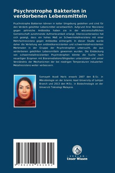 Psychrotrophe Bakterien können in kalter Umgebung gedeihen und sind für den Verderb gekühlter Lebensmittel verantwortlich. Aufgrund ihrer Resistenz gegen zahlreiche Antibiotika haben sie in der wissenschaftlichen Gemeinschaft zunehmende Aufmerksamkeit erlangt. Interessanterweise hat sich gezeigt, dass ein hohes Maß an Schwermetallresistenz mit einer Mehrfachresistenz gegen Antibiotika einhergeht. In dieser Studie wurde daher die Verteilung von antibiotikaresistenten und schwermetallresistenten Merkmalen in der Gruppe der Psychrotrophen untersucht, die aus verdorbenen gekühlten Lebensmitteln gewonnen wurden. Die Entdeckung von schwermetallresistenten Psychrotrophen könnte die Suche nach neuartigen Enzymen mit Bioremediationsfähigkeiten unterstützen und unser Verständnis der Mechanismen der bei niedrigen Temperaturen induzierten Metallresistenz weiter verbessern.