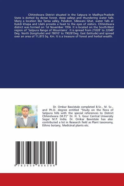Chhindwara District situated in the Satpura in Madhya-Pradesh State is dotted by dense forest, deep valleys and thundering water falls. Many a location like Tamia valley, Patalkot, Sillewani Ghat, water falls at Kukdi khapa and Lilahi provide a feast to the eyes of visitors. Chhindwara district was formed on 1st November 1956. It is located on the South-West region of 'Satpura Range of Mountains'. It is spread from 21028' to 22049' Deg. North (longitude) and 78010' to 79028'Deg. East (latitude) and spread over an area of 11,815 Sq. Km. It is a treasure of forest and herbal wealth.