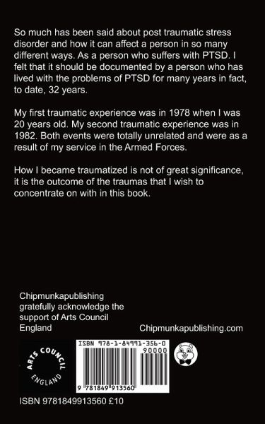 Description The book was written with a view to enlighten those with little or no experience of coming into contact with those unfortunate to be suffering with PTSD, or indeed those with PTSD wanting more information about their disorder. It was not meant to be a work that should be read from start to finish, but may be done so if the reader wishes. It was intended to be used as a pick up reference. Extracts of the author's life and own particular turmoil has been used to give clear and concise descriptions of some of the symptoms that go to make up PTSD. The book is not written from a medical view, nor is it a definitive article on PTSD (if such a work exists) but to put down in layman's terms , words and phrases that one may hear when dealing with PTSD, in order to help form a clearer understanding of the disorder. Certain examples of PTSD in given situations have been included to give an insight into what could be happening to the sufferer, without onlookers realising. There are obvious examples where onlookers cannot fail to notice that something is going on but not understand what. I have also included a glossary of terms in an aid to understand the jargon.