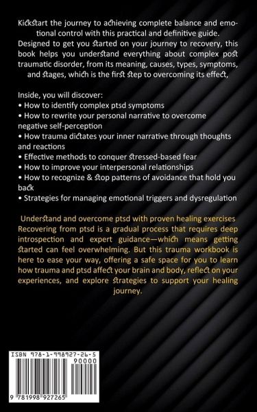 Kickstart the journey to achieving complete balance and emotional control with this practical and definitive guide. Designed to get you started on your journey to recovery, this book helps you understand everything about complex post traumatic disorder, from its meaning, causes, types, symptoms, and stages, which is the first step to overcoming its effect, Inside, you will discover:How to identify complex ptsd symptoms How to rewrite your personal narrative to overcome negative self-perception How trauma dictates your inner narrative through thoughts and reactions Effective methods to conquer stressed-based fear How to improve your interpersonal relationships How to recognize & stop patterns of avoidance that hold you back Strategies for managing emotional triggers and dysregulation Understand and overcome ptsd with proven healing exercises Recovering from ptsd is a gradual process that requires deep introspection and expert guidance-which means getting started can feel overwhelming. But this trauma workbook is here to ease your way, offering a safe space for you to learn how trauma and ptsd affect your brain and body, reflect on your experiences, and explore strategies to support your healing journey.