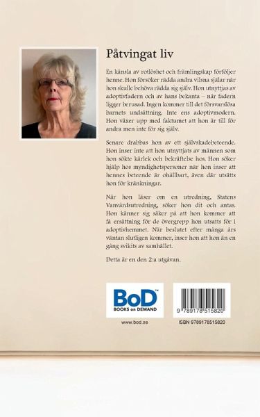 En känsla av rotlöshet och främlingskap förföljer henne. Hon försöker rädda andra vilsna själar när hon skulle behöva rädda sig själv. Hon utnyttjas av adoptivfadern och av hans bekanta ¿ när fadern ligger berusad. Ingen kommer till det försvarslösa barnets undsättning. Inte ens adoptivmodern. Hon växer upp med faktumet att hon är till för andra men inte för sig själv. Senare drabbas hon av ett självskadebeteende. Hon inser inte att hon utnyttjats av männen som hon sökte kärlek och bekräftelse hos. Hon söker hjälp hos myndighetspersoner när hon inser att hennes beteende är ohållbart, även där utsätts hon för kränkningar. När hon läser om en utredning, Statens Vanvårdsutredning, söker hon dit och antas. Hon känner sig säker på att hon kommer att få ersättning för de övergrepp hon utsatts för i adoptivhemmet. När beslutet efter många års väntan slutligen kommer, inser hon att hon än en gång svikits av samhället. Detta är en den 2:a utgåvan.