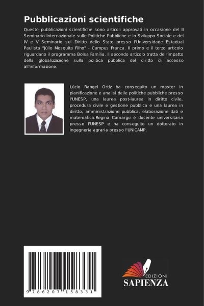 Queste pubblicazioni scientifiche sono articoli approvati in occasione del II Seminario Internazionale sulle Politiche Pubbliche e lo Sviluppo Sociale e del IV e V Seminario sul Diritto dello Stato presso l'Universidade Estadual Paulista "Júlio Mesquita Filho" - Campus Franca. Il primo e il terzo articolo riguardano il programma Bolsa Família. Il secondo articolo tratta dell'impatto della globalizzazione sulla politica pubblica del diritto di accesso all'informazione.
