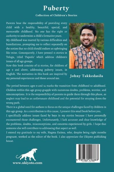 Parents bear the responsibility of providing every child with a healthy, beautiful, special, and memorable childhood. No one has the right or authority to undermine a child's formative years. My childhood was marred by various difficulties and humiliations, prompting me to reflect repeatedly on the notion that no child should endure an upbringing like mine. Consequently, I have penned 11 stories in Telugu, titled 'Papodu' which address children's issues of all age groups. Now this book consists of 15 stories, for children of age 9 and above, addressing puberty issues, in English. The narratives in this book are inspired by my personal experiences and those around me. The period between ages 9 and 14 marks the transition from childhood to adulthood. Children within this age group grapple with numerous doubts, problems, worries, and misconceptions. It is the responsibility of parents to guide them through this phase, as neglect may lead to an unfortunate childhood and the potential for straying down the wrong path. There is a global need for authors to focus on the unique challenges faced by children in this age group. As a contribution to this cause, I present this small book before you. I specifically address issues faced by boys in my stories because I have personally encountered those challenges. Unfortunately, I lack accurate and clear knowledge of the problems, doubts, misconceptions, and concerns experienced by girls. I hope that someone else will contribute to addressing that aspect as well. I extend my gratitude to my wife, Nagma Fatima, who, despite being eight months pregnant, worked as the editor of the book. I also appreciate the Ukiyoto publishing house.