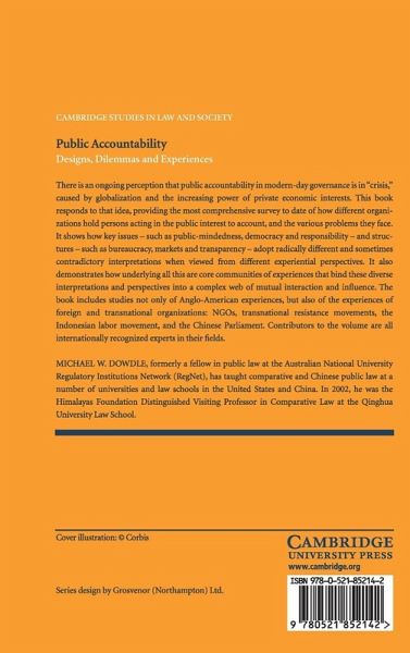 This book responds to an on-going perception of a 'crisis' in public accountability in modern-day governance caused by globalization and increased power of private economic interests. It provides the most comprehensive survey to date of how different organizations hold persons acting in the public interest to account and the problems they face. It includes studies not only of Anglo-American experiences, but also of those of foreign and transnational organizations such as NGOs, transnational resistance movements, the Indonesian labor movement, and the Chinese Parliament. Contributors are all internationally-recognized experts in their fields.