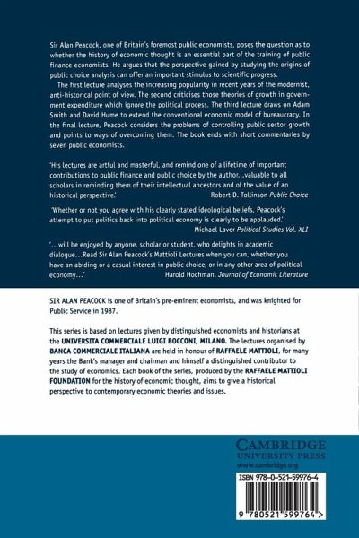 In this volume, Sir Alan Peacock, one of Britain's most noted public economists, poses the question as to whether the history of economic thought is an essential part of the training of public finance economists. He argues that the perspective gained by studying the origins of public choice analysis can offer an important stimulus to scientific progress. The first lecture analyses the increasing popularity in recent years of the modernist, anti-historical point of view. The second criticises those theories of growth in government expenditure which ignore the political process. The third lecture draws on Adam Smith and David Hume to extend the conventional economic model of bureaucracy. In the final lecture, Peacock considers the problem of controlling public sector growth and points to ways of overcoming them. The book ends with short commentaries by seven public economists.
