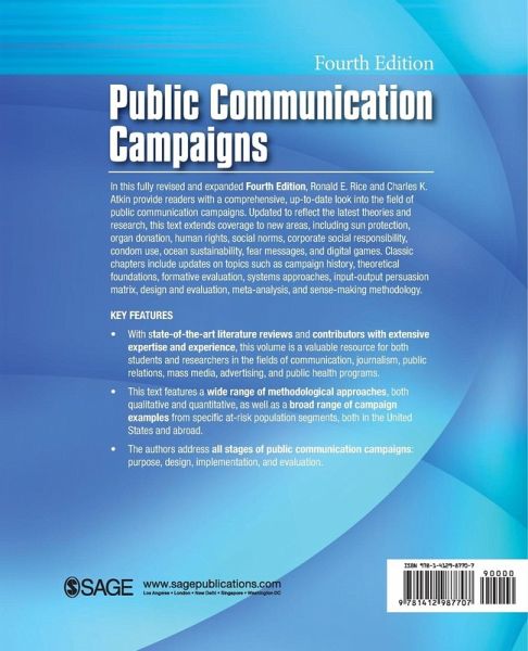 In this new, fully revised and expanded fourth edition of Public Communication Campaigns, Rice and Atkin provide readers with a comprehensive, up-to-date look into the field of public communication campaigns. The subject of campaigns has become increasing
