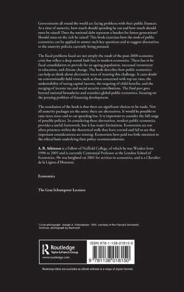Governments all round the world are facing problems with their public finances. At a time of austerity, how much should spending be cut and how much should taxes be raised? Does the national debt represent a burden for future generations? Should taxes on the rich be raised? This book examines how the tools of public economics can be applied to answer such key questions and to suggest alternatives to the austerity policies currently being pursued. The fiscal problems faced are not simply the result of the post-2008 economic crisis but reflect a deep-seated fault line in modern economies. There has to be fiscal consolidation to provide for an ageing population, increased investment in education, and climate change. The book describes how public economics can help us think about alternative ways of meeting this challenge. It casts doubt on conventionally held views, such as those concerned with top tax rates, the undesirability of taxing capital income, the targeting of child benefits, and the merging of income tax and social security contributions. The final part goes beyond national boundaries and considers global public economics, focusing on the pressing problem of financing development. The conclusion of the book is that there are significant choices to be made. Not all austerity packages are the same: there are alternatives. It would be possible to raise taxes more and to cut spending less. It is important to consider the full range of possible policies. In considering these alternatives, modern public economics provides a useful framework, but it has major limitations. Economists are too often prisoners within the theoretical walls they have erected and fail to see that important considerations are missing. Economists have paid too little attention to the ethical basis underlying their policy recommendations.