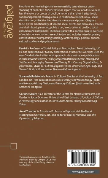 Emotions are central to our practices and understanding of public life. This book examines the political, social and personal consequences of public emotions in relation to conflict, ritual, social classification, collective life, identity, memory and power and is a multidisciplinary collaboration showing the emotional character of public life.