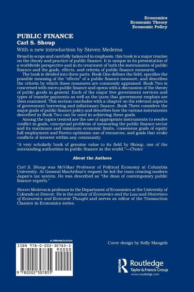 Book One. Public Finance Analysis One: Public Finance: Scope and Effects Two: Criteria Book Two: Micro Public Finance I: Government Outlays Three: Types of Outlay and Receipt Expenditure Administration Four: Government Services in General Five: Particular Government Services Six: Unrequited Payments in General Seven: Particular Unrequited Payments II: Government Receipts Eight: General Sales Taxes: Turnover Tax and Intermediate Single-Stage Taxes Nine: General Sales Taxes: Retail Sales Tax, Value-Added Tax Ten: Excise Taxes Monopoly Revenue Eleven: Income Taxes: I Twelve: Income Taxes: II Thirteen: Expenditure Tax Fourteen: Property Taxation: Net-Worth Tax, Capital Levy, Death and Gift Taxes Fifteen: Property Taxation: Real Estate Tax, Taxes on Transfers for a Consideration Sixteen: Taxes on Labor Income Export and Import Taxes Other Taxes and Para-Taxes Seventeen: Tax Administration Eighteen: Government Borrowing Inflationary Finance Book Three: Macro Public Finance Nineteen: Framework of Macro Public Finance Twenty: Size of the Public Finance Sector Twenty-One: Optimum Output Pattern Twenty-Two: Full Employment and Capacity Utilization Twenty-Three: Distribution of Disposable Income Economic Growth Twenty-Four: Price Stability External Equilibrium Twenty-Five: Intergovernmental Fiscal Coordination
