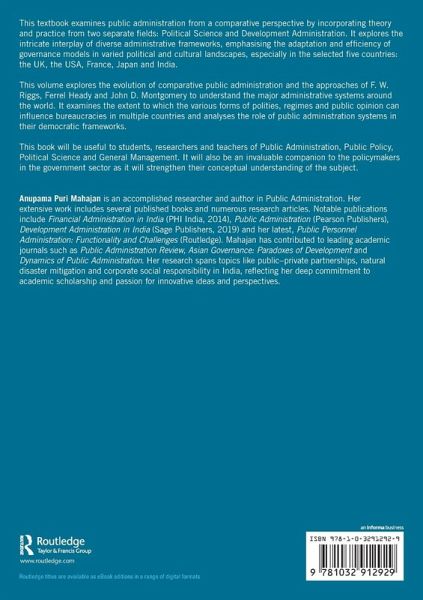 This textbook examines public administration from a comparative perspective by incorporating theory and practice from two separate fields: Political Science and Development Administration. It explores the intricate interplay of diverse administrative frameworks, emphasising the adaptation and efficiency of governance models in varied political and cultural landscapes, especially in the selected five countries: the UK, the USA, France, Japan and India.
