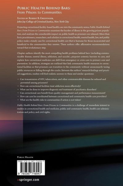 Public Health BehindBars: From Prisons to Communities is a challenge of immediate interest to readers in correctional health and medicine, public and community health, health care administration and policy, and civil rights.