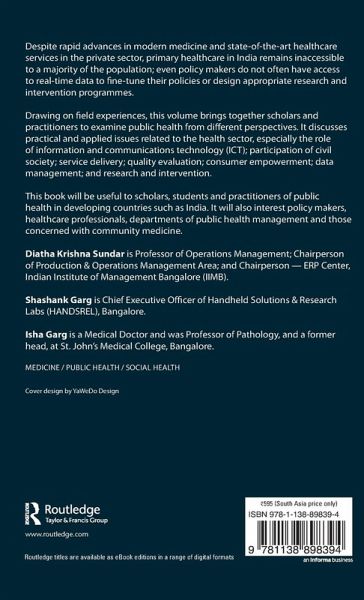 Despite rapid advances in modern medicine and state-of-the-art health care services in the private sector in India, primary health care remains inaccessible to a majority of the population. This compendium of essays by scholars and practitioners addresses the three important themes of public health, micro-finance and governance with a view towards enabling policy and decision makers, academics, researchers and industry participants in improving service delivery.