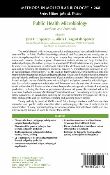 Public Health Microbiology: Methods and Protocols is focused on microorganisms that can present a hazard to human health in the course of everyday life. There are chapters dealing with organisms that are directly pathogenic to humans, including bacteria, viruses, and fungi; on organisms that produce toxins during growth in their natural habitats; on the use of bacteriocins produced by such organisms as lactobacilli and bifidobacteria; as well as several chapters on hazard analysis, the use of disinfectants, microbiological analysis of cosmetics, and microbiological tests for sanitation equipment in food factories. Additional chapters look at the use of animals (mice) in the study of the various characteristics of milk and their relationships with lactic acid bacteria in particular. Other chapters focus on special methods for determining particular components of milk. In particular, in Parts I and II, on bacterial and viral pathogens, special attention is given to methods for PCR detection of genes with resistance to tetracycline, as well as to Salmonella enterica; for identification and typing of Campylobacter coli; for detection of the abundance of enteric viruses, hepatitis A virus, and rotaviruses in sewage, and of bacteriophages infecting the O157:H7 strain of Escherichia coli. Part III offers methods for computerized analysis and typing of fungal isolates, for isolation and enumeration of fungi in foods, and for the determination of aflatoxin and zearalenone.