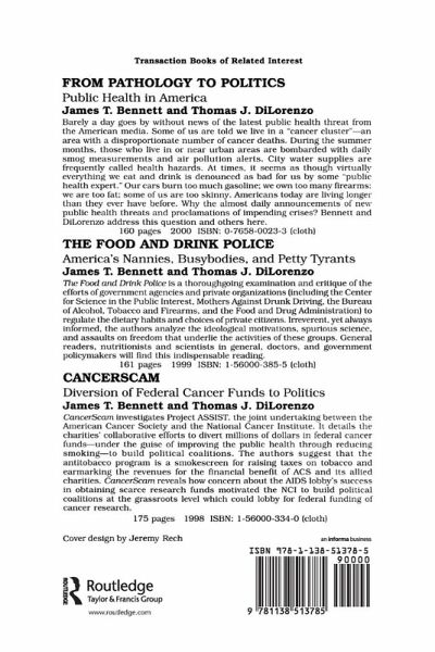 The diet industry feeds on the hopes and the fears of those who need-or think that they need-to lose weight. Since the publication of the first known diet book in 1864, a host of sanctimonious preachers and self-proclaimed experts-often overweight themselves-have stoked fears of obesity effectively for both profit and political power, none more so than former surgeon general C. Everett Koop. In Public Health Profiteering, James T. Bennett and Thomas J. DiLorenzo offer a scathing and irreverent assessment of Koop's public and private career showing how a brilliant pediatric surgeon has evolved into a self-seeking and hypocritical public scold.During his term as Surgeon General under the Bush administration, Koop, enamored of the military trappings of title and uniform, saw himself as leading an army of public health administrators against an enemy. As often as not, the enemy took on the disquieting countenance of the American people. In Koop's view they were stupid, improvident, feckless, unable to make the simplest decisions about their lives. As Bennett and DiLorenzo show, he used his position as a bully pulpit for intemperate attacks on the tobacco and alcohol industries and to irresponsibly exaggerate the dangers of obesity. While taking a prohibitionist line, Koop himself smoked a pipe, drank martinis, and weighed in at a hefty 210 pounds. Although Koop claimed that he would never cash in on his office, his subsequent career tells a far different story. He has lobbied, hawked, and endorsed products for a host of firms: Wyeth Ayerst (makers of the dubious diet drug Fen-Phen), Weight Watchers, Jenny Craig, Intel, Neurocrine, Kelloggs, BioPure, and many others.Lively in style and carefully researched, Public Health Profiteering will be of interest to health policy specialists, political scientists, economists, and media analysts.James T. Bennett is professor of economics at George Mason University. He is founder and editor of the Journal of Labor Research and has authored many books and articles, including Health Research Charities: Image and Reality and Official Lies: How Washington Misleads Us, co-authored with Thomas DiLorenzo.Thomas DiLorenzo is professor of economics at the Sellinger School of Business and Management at Loyola College in Baltimore. He has co-authored many books and is widely published in academic journals as well as the popular press, including the Wall Street Journal and USA Today.