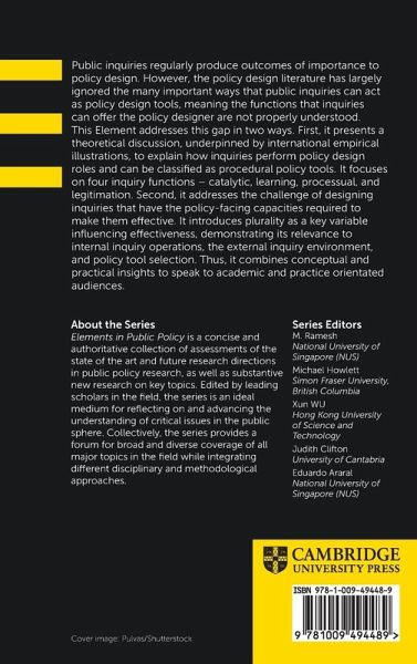 This Element addresses the gap in policy design literature that has largely ignored the important ways that public inquiries can act as policy design tools, meaning the functions that inquiries can offer the policy designer are not properly understood.