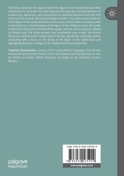 This book addresses the ways in which the figure of the intellectuals and their relationship to the public has been theorized through the conceptualizations of bureaucracy, democracy, and communism as universal processes from the 19th century to the present. Starting with Hegel and Marx, the author looks at the rise of the figure of the universal intellectual in various forms, before turning to what is presented as a transformation of the figure of the intellectual into 'the public intellectual' advanced by the New Philosophies and the critical response offered by Edward Said. The study presents two comparative case studies: the Iranian Revolution and the public intellectuals in Europe, specifically in Norway, before concluding with a focus on the decay of the figure of the intellectuals and highlighting Ranciere's critique of the intellectual/masses distinction.