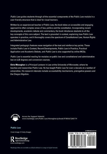 Public Law guides students through all the essential components of the Public Law module, in a user-friendly structure that is ideal for visual learners. Public Law is essential reading for modules on public law and constitutional and administrative law on LLB degrees and conversion courses.