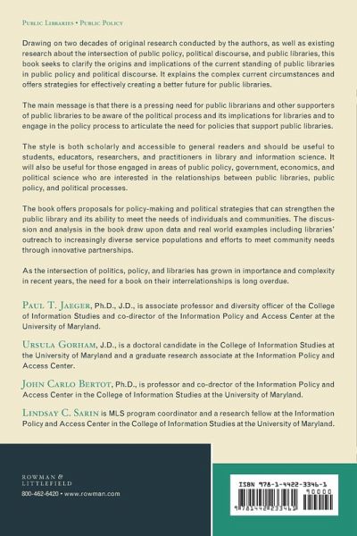 Over the past thirty years, significant shifts in technology, political ideologies, and policy goals have resulted in an environment in which public libraries face the highest expectations to serve community needs against unprecedented political, economic, and policy challenges. Drawing on two decades of original research conducted by the authors, this book provides a data-driven examination of the interrelated impacts of political discourse and public policy processes on public libraries and the ways in which they are able to serve their communities, explaining the complex current circumstances and offering strategies for effectively creating a better future for public libraries.