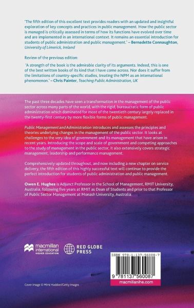 Introducing the scope and scale of government, competing approaches to the study of management in the public sector, different forms of service delivery and the major topics in the subject such as strategic management, leadership and performance management, this book continues to be a key point of reference for lecturers and students in the field.