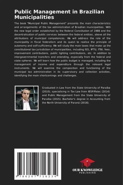 The book "Municipal Public Management" presents the main characteristics and arrangements of the tax administration of Brazilian municipalities. With the new legal order established by the Federal Constitution of 1988 and the decentralisation of public services between the federal entities, above all the attributions of municipal competences. We will address the role of the municipality in fiscal federalism and its quest to realise the principle of autonomy and self-sufficiency. We will study the main taxes that make up the constitutional tax jurisdiction of municipalities, including ISS, IPTU, ITBI, fees, improvement contributions, public lighting contributions, etc. In addition to intergovernmental transfers and onlending, especially from the federal and state spheres. We will learn how the public budget is managed, including the management of income and expenditure through the relevant legal instruments. We will examine the composition and functioning of the municipal tax administration in its supervisory and collection activities, identifying the main shortcomings and challenges.