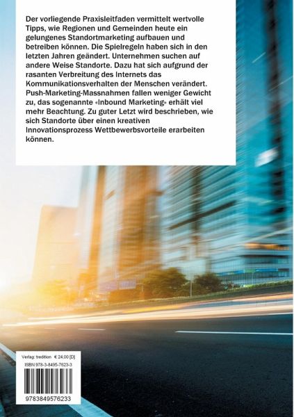 Der vorliegende Praxisleitfaden vermittelt wertvolle Tipps, wie Regionen und Gemeinden heute ein gelungenes Standortmarketing aufbauen und betreiben können. Ein besonderes Augenmerk wird dabei auf den Einsatz von elektronischen und sozialen Medien gelegt. Zu guter Letzt wird ausführlich beschrieben, wie sich Standorte über einen kreativen Innovationsprozess Wettbewerbsvorteile erarbeiten können.