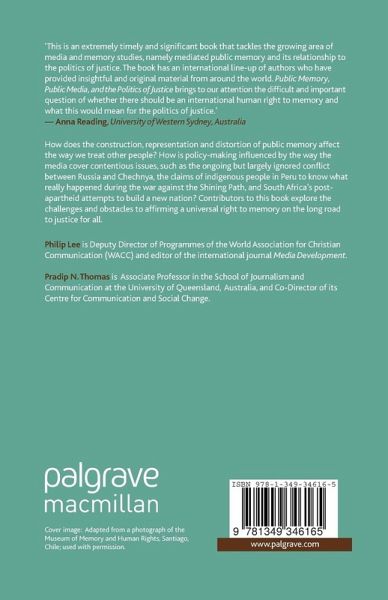 Foreword Introduction: Public Media and the Right to Memory: Towards an Encounter with Justice Rethinking Justice: Between Public Amnesia and Public Memory Images of Disappearance in Argentina: How Films, Photos, and Television Buttress Memory East Timor, the United States and Mass Atrocities: Remembering and Forgetting Justice, Media and Memory: The South African Transition A Time of Mourning: The Politics of Commemorating the Tutsi Genocide in Rwanda The European Roma: An Unsettled Right to Memory The Chechen Memory of Deportation: From Recalling a Silenced Past to the Political Use of Public Memory 'Media memories' in Bosnia and Herzegovina Slavery and Emancipation in the Caribbean: Preserving the Public Memory Endnote Index
