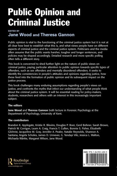 Public opinion is vital to the functioning of the criminal justice system but it is not at all clear how best to establish what this is, and what views people have on different aspects of criminal justice and the criminal justice system. Politicians and the media often assume that the public wants harsher, tougher and longer sentences, and policies may be shaped accordingly. Detailed research and more specific polling often tells a different story. This book is concerned to shed further light on the nature of public views on criminal justice, paying particular attention to public opinion towards specific types of offenders, such as sex offenders and mentally disordered offenders. In doing so it challenges many enduring assumptions regarding people's views on justice, and confronts the myths that infect our understanding of what people think about the criminal justice system.