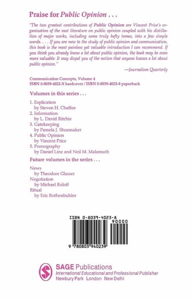 Public opinion - is it a simple aggregation of individual views, or is it some kind of collective-level, emergent product of debate? What is the role of public opinion in popular government? How do the mass media shape public opinion or link it with governmental decision-making? This book explores such questions by tracing the historical development and application of the concept of public opinion.