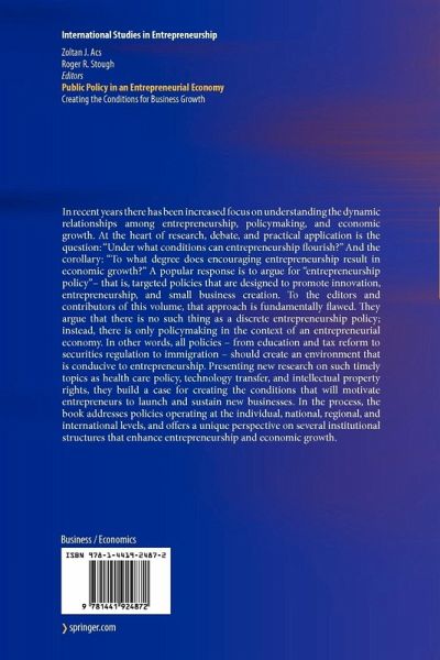 In recent years there has been increased focus on understanding the dynamic relationships among entrepreneurship, policymaking and economic growth. At the heart of research, debate and practical application is the question: "Under what conditions can entrepreneurship flourish?" And the corollary: "To what degree does encouraging entrepreneurship result in economic growth?" A popular response is to argue for "entrepreneurship policy"-that is, targeted policies that are designed to promote innovation, entrepreneurship, and small business creation. To the editors and contributors of this volume, that approach is fundamentally flawed. They argue that there is no such thing as a discrete entrepreneurship policy; instead, there is only policymaking in the context of an entrepreneurial economy. The book addresses policies operating at the individual, national, regional, and international levels, and offers a unique perspective on several institutional structures that enhance entrepreneurship and economic growth.