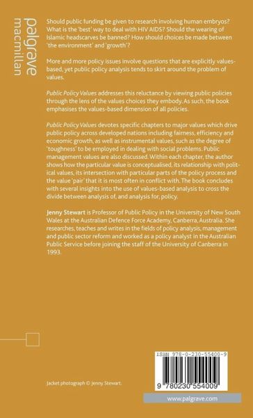 More and more policy issues involve issues that are explicitly values-based, yet public policy analysis tends to skirt around the question of values. Public Policy Values overcomes this reluctance by showing how public policies enable values-choices to be made, often without seeming to do so.