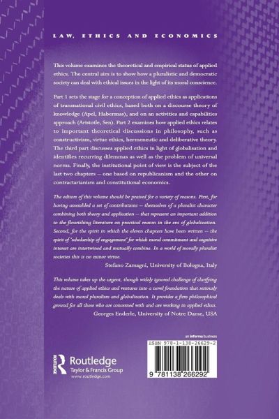 Examining the theoretical and empirical status of applied ethics, this volume demonstrates how a pluralistic and democratic society can deal with ethical issues in the light of its moral conscience. The volume first sets the stage for a conception of applied ethics as applications of transnational civil ethics, based both on a discourse theory of knowledge (Apel, Habermas), and on an activities and capabilities approach (Aristotle, Sen). It then examines how applied ethics relates to important theoretical discussions in philosophy such as constructivism, virtue ethics, hermeneutic and deliberative theory. The contributors discuss applied ethics in light of globalization and identify recurring dilemmas as well as the problem of universal norms. They close by considering two aspects of the institutional point of view - republicanism, and contractarianism and constitutional economics.