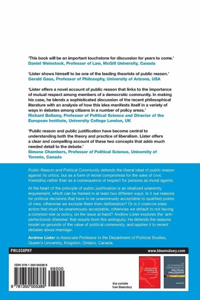 Public Reason and Political Community defends the liberal ideal of public reason against its critics, but as a form of moral compromise for the sake of civic friendship rather than as a consequence of respect for persons as moral agents. At the heart of the principle of public justification is an idealized unanimity requirement, which can be framed in at least two different ways. Is it our reasons for political decisions that have to be unanimously acceptable to qualified points of view, otherwise we exclude them from deliberation, or is it coercive state action that must be unanimously acceptable, otherwise we default to not having a common rule or policy, on the issue at hand? Andrew Lister explores the 'anti-perfectionist dilemma' that results from this ambiguity. He defends the reasons model on grounds of the value of political community, and applies it to recent debates about marriage.