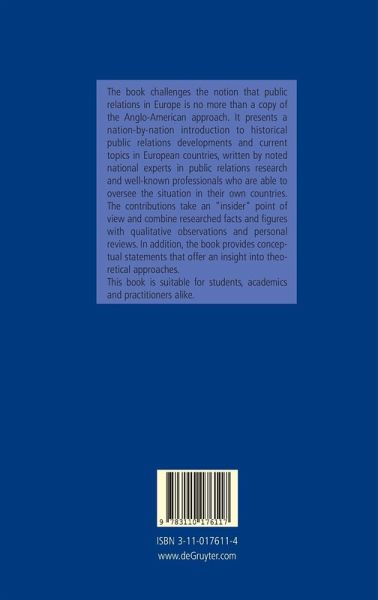 The book challenges the notion that public relations in Europe is no more than a copy of the Anglo-American approach. It presents a nation-by-nation introduction to historical public relations developments and current topics in European countries, written by noted national experts in public relations research and well-known professionals who are able to oversee the situation in their own countries. The contributions take an "insider" point of view and combine researched facts and figures with qualitative observations and personal reviews. In addition, the book provides conceptual statements that offer an insight into theoretical approaches.