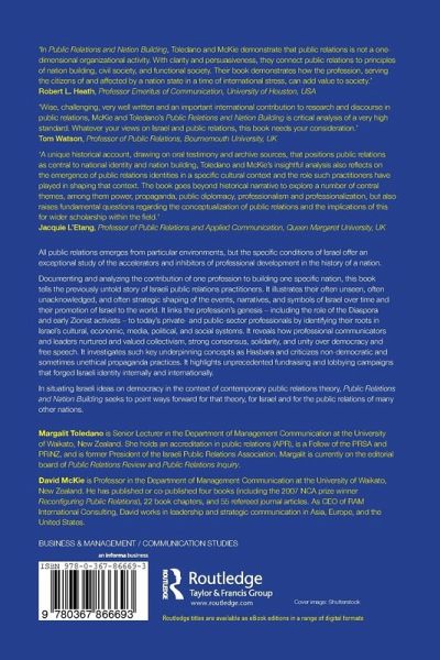 All public relations emerges from particular environments, but the specific conditions of Israel offer an exceptional study of the accelerators and inhibitors of professional development in the history of a nation. Documenting and analyzing the contribution of one profession to building one specific nation, this book tells the previously-untold story of Israeli public relations practitioners. It illustrates their often-unseen, often-unacknowledged and often-strategic shaping of the events, narratives and symbols of Israel over time and their promotion of Israel to the world. It links the profession's genesis - including the role of the Diaspora and early Zionist activists - to today's private and public sector professionals by identifying their roots in Israel's cultural, economic, media, political, and social systems. It reveals how professional communicators and leaders nurtured and valued collectivism, high consensus, solidarity, and unity over democracy and free speech. It investigates such key underpinning concepts as Hasbara and criticizes non-democratic and sometimes unethical propaganda practices. It highlights unprecedented fundraising and lobbying campaigns that forged Israeli identity internally and internationally. In situating Israeli ideas on democracy in the context of contemporary public relations theory, Public Relations and Nation Building seeks to point ways forward for that theory, for Israel and for the public relations of many other nations.
