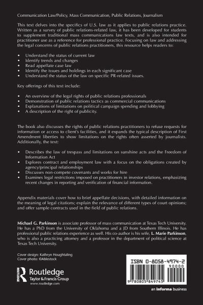 Michael G. Parkinson is associate professor of mass communication at Texas Tech University. He has a PhD from the University of Oklahoma and a JD from Southern Illinois. He has professional public relations experience as well. His coauthor is his wife, L. MarieParkinson, who is also a practicing attorney and a professor in the department of political science at Texas Tech University.