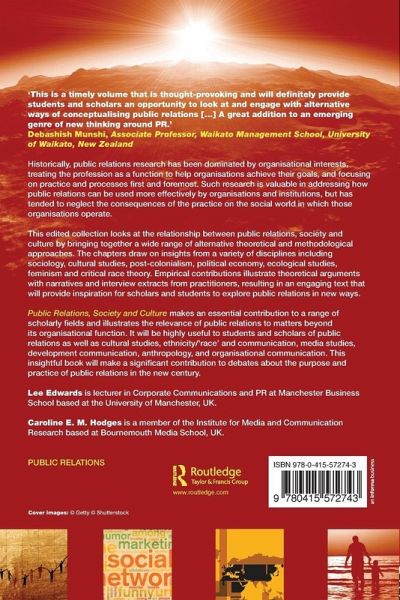 Lee Edwards is lecturer in Corporate Communications and PR at Manchester Business School based at the University of Manchester, UK. Her main research interests revolve around sociological understandings of PR and include the operation of power in and through PR, 'race' and PR, PR as a cultural intermediary, and PR in the context of globalization. She is a member of the Editorial Board for the Journal of Public Relations Research, and has contributed to a number of books including The SAGE Handbook of Public Relations (2010) and Public Relations in Global Cultural Contexts (2010). Caroline E. M. Hodges is a member of the Institute for Media and Communication Research based at Bournemouth Media School. She regularly teaches on undergraduate and postgraduate units concerned with the relationship between communication and culture. Caroline's research interests include the application of ethnography within communication research, Latin American communication theory, transnational and multicultural public relations and communication for social change.